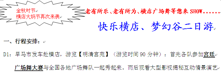 【強(qiáng)力推薦】橫店大媽節(jié)兩日游